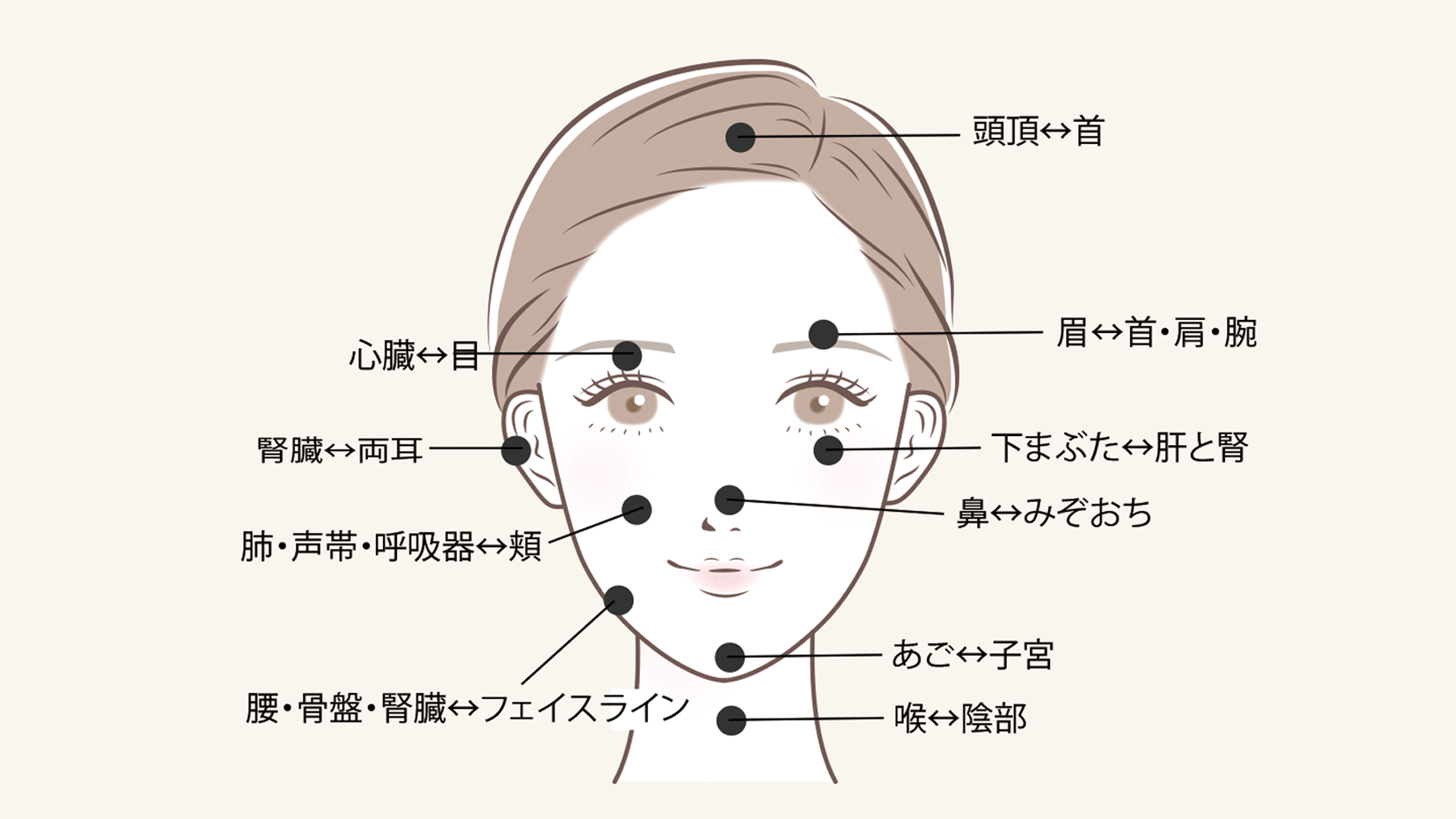 顔には100以上のツボがあり身体の不調、思考の不調と連動していてその様子がダイレクトにお顔にも表れています。